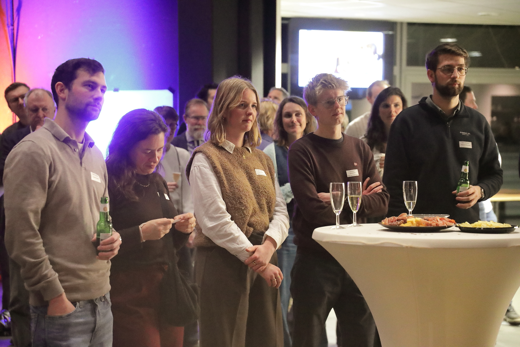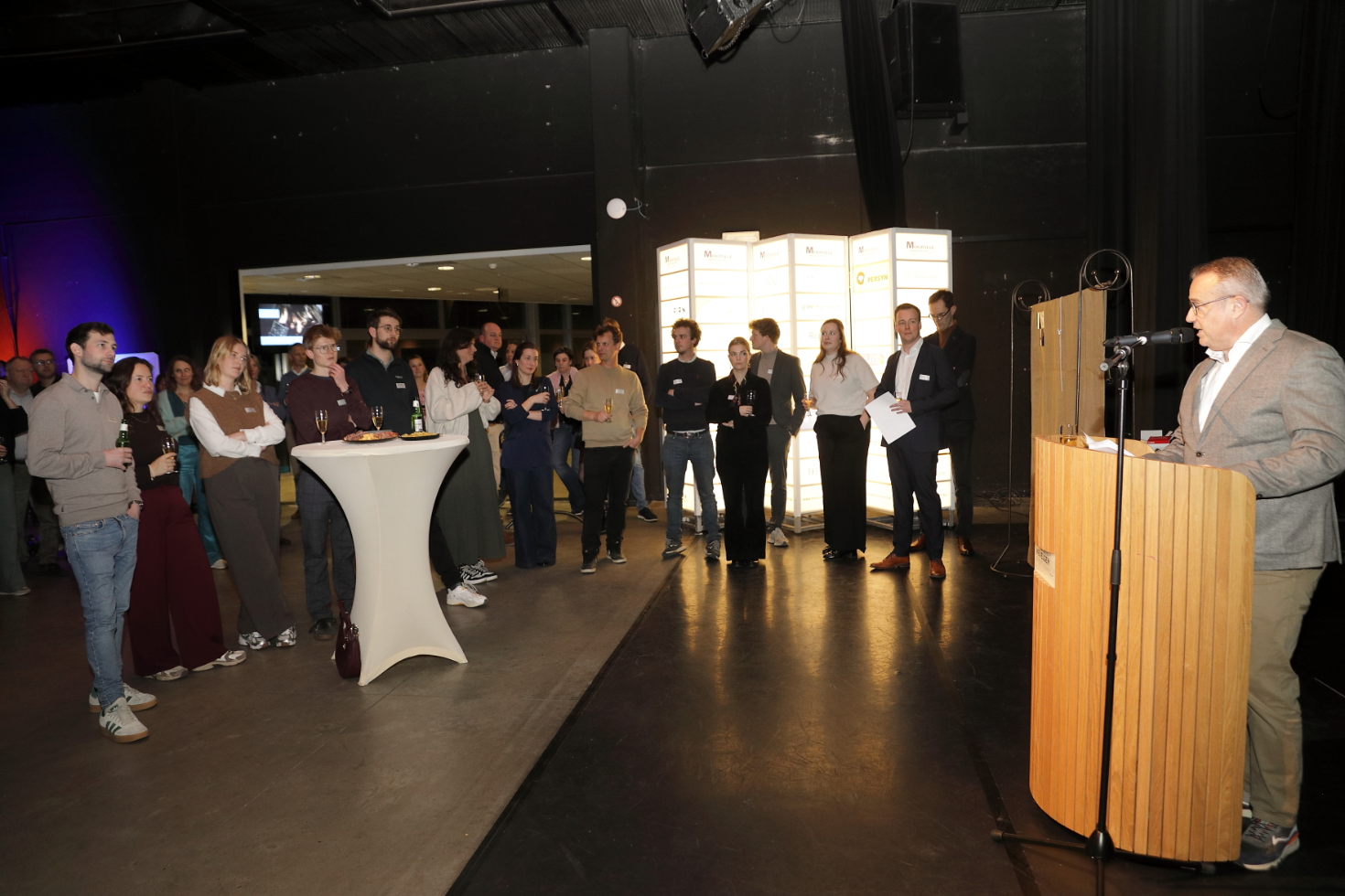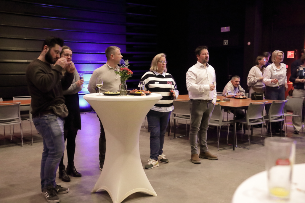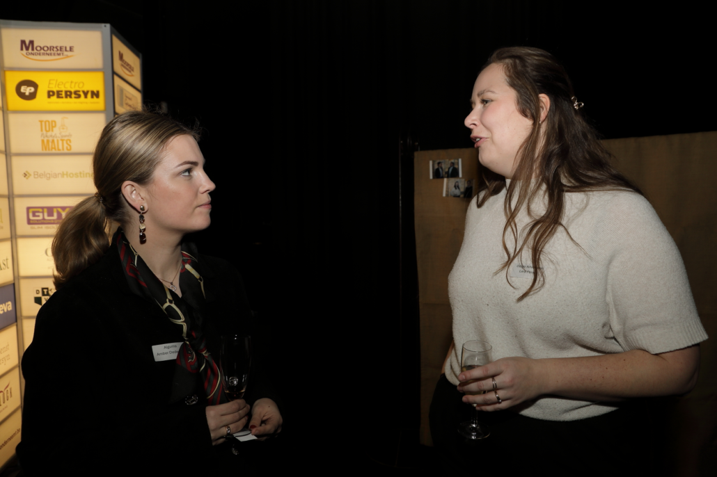Dit jaar kreeg de receptie bovendien een frisse twist dankzij onze nieuwe, jeugdige bestuursleden, die de avond in een nieuw jasje staken. Ze nodigden iedereen uit om op ontdekking te gaan naar boeiende verhalen van en bij onze ondernemers.
